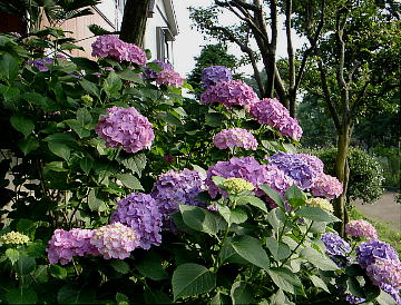 よく,家の周りのコンクリート塀から顔を出している紫陽花を見かけますが,紫陽花は,やはり公園やお寺にあるのが綺麗ですね。